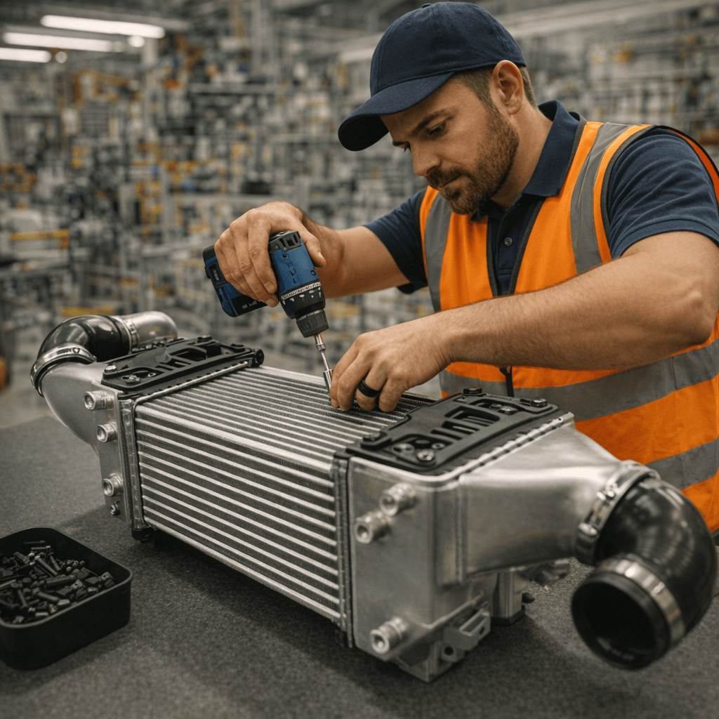 Intercooler installation with system-guided bolt release