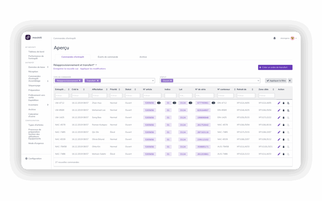 À partir des données reçues, des ordres de traitement en entrepôt sont générés selon la stratégie de séquence définie. Le système indique précisément à l’opérateur logistique dans quel ordre les articles doivent être préparés.